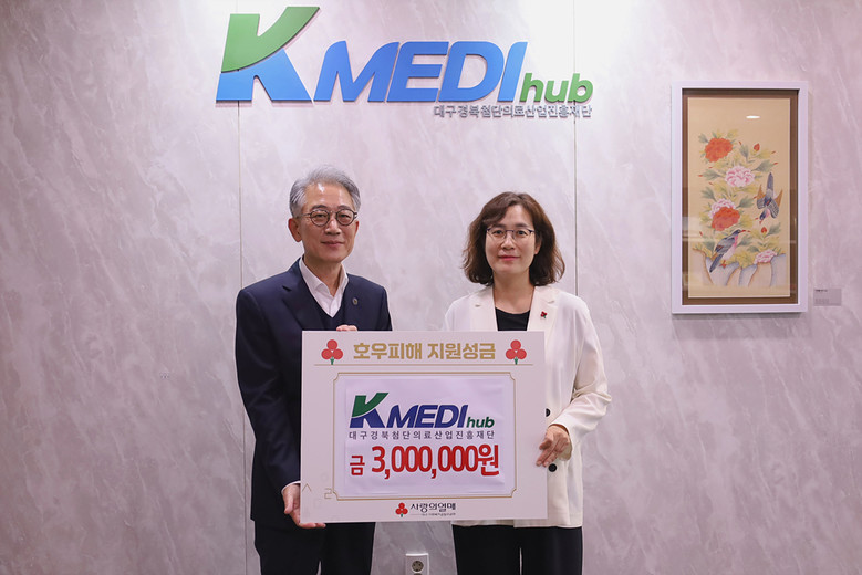 박구선 케이메디허브 이사장은 “호우로 인해 수해를 입은 모든 분들게 깊은 위로의 말씀을 전한다”며, “재단은 향후 기후변화로 인해 증가하는 자연재해에 경각심을 가지고 국민안전을 위해 최선을 다하겠다”고 밝혔다.