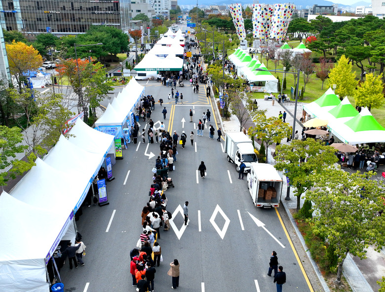올해 축제는 ‘우주최광(光) 김치파티’를 주제로 열렸으며, 시청 앞 도로를 ‘차 없는 거리’로 조성해 김치마켓과 농산물마켓을 전면에 배치하는 등 방문객 동선을 효율적으로 구성했다. 이에 방문객과 입점업체 모두 높은 만족도를 보였다.