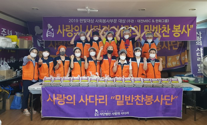 사랑의 사다리 밴드 밑반찬 봉사는 회원들의 자발적인 후원금으로 대전광역시 5개구의 부자가정,지체장애인가정,시각장애인가정등 30가정에 동구-대덕구-서구-유성구-중구 순으로 매주 금요일 오전9시~오후1시, 대덕구 중리동에 위치한 사랑의 사다리 밴드 사무실에서 하고 있다.