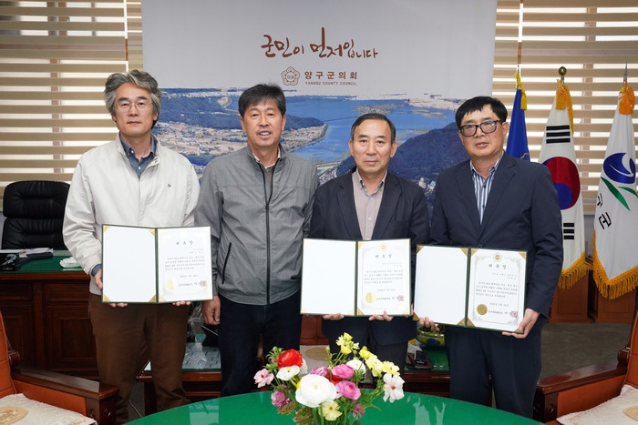[양구군=세계타임즈 김민석 기자] 이상건양구군의회의장이 24일 의장실에서 양구군 2019 세입세출 결산검사위원에게 위촉장을 수여했다. 이날 위촉된 위원으로는 신철우(양구군의원)위원, 이영병위원, 윤용표위원으로 양구군 2019 회계년도 세입.세출 결산 검사 업무의 원활한 수행을위해 2020년 4월17일부터 5월6일까지 20일간 위원으로 활동한다.