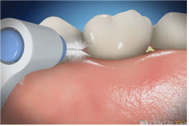 ▲ 잇몸 수술을 받은 경우에 잇몸의 염증이 제거되고 잇몸이 회복하면 그림에서처럼 잇몸이 내려가고 치아의 뿌리가 노출된다. 노출된 치아 뿌리 사이로 음식물이 껴서 염증이 재발되지 않게 하려면 치간칫솔로 사이사이 청소해 줘야 한다. |