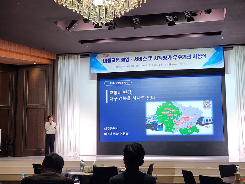 대구시는 대중교통 기반시설 확충과 서비스 개선 부분에서 높은 평가를 받아 특·광역시 그룹 내에서 기관 표창(2위)을 수상했다. 또한, 대구권 광역환승제 확대를 통해 지자체 간 상생협력 모델을 구축하며 우수 시책에 선정돼 이명희 주무관(버스운영과)이 개인 표창을 받았다.