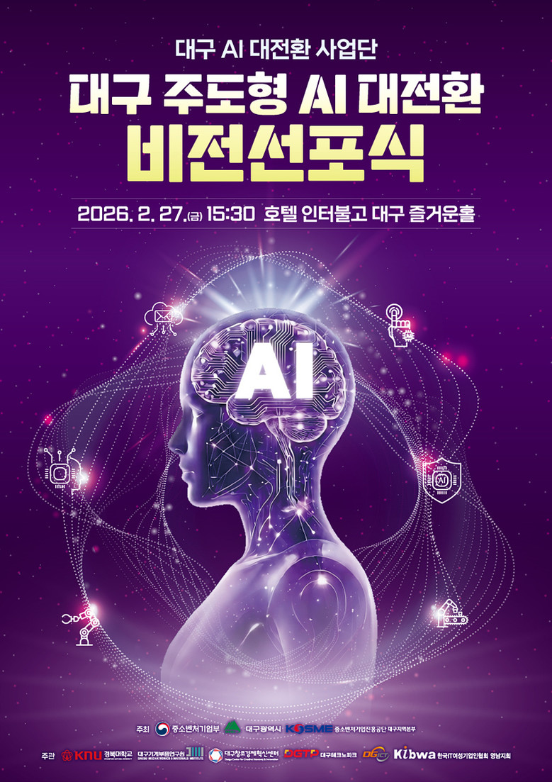 이번 행사에는 대구시를 비롯해 대구경북지방중소벤처기업청, 중소벤처기업진흥공단, 사업 수행기관 등 100여 명이 참석해 지역산업의 인공지능(AI) 전환 비전과 추진 방향을 공유할 예정이다.