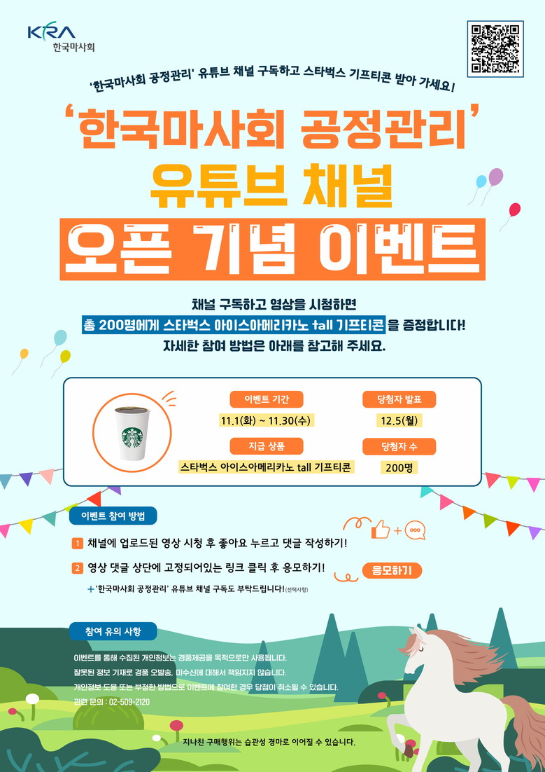 이번 이벤트도 이러한 노력의 일환으로서, 그 동안 제도권 내에 있는 경주마관계자만을 대상으로 경마비위 예방 교육을 시행해 왔다면, 올해는 일반 국민으로 교육 대상을 더욱 확대했다. 국민 스스로가 공정경마 실천에 동참하여 공정하고 투명한 경마산업 생태계 조성을 위해 노력하고, 나아가 신뢰받는 경마산업으로 도약하겠다는 취지다. 교육 방법은 누구나 쉽게 이용할 수 있는 유튜브 채널을 활용하여 접근성을 높였다.