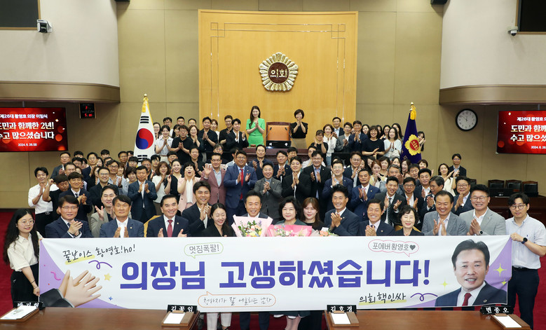 황 의장은 이어 “불가피한 정치적 역학관계 속에서 번민하며 크고 작은 어려움도 있었지만 늘 함께 해준 동료의원들과 집행기관 공직자들의 협조, 164만 도민의 성원이 있었기에 흔들림 없이 의장으로서의 역할에 충실할 수 있었다고 생각한다”고 했다.