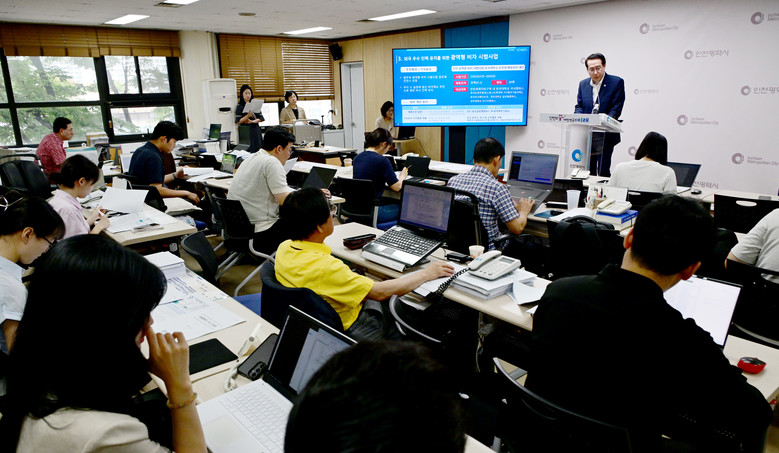 | ▲ 김영신 국제협력국장이 3일 시청 브리핑룸에서 국제협력국 소관 현안과 관련해 기자브리핑을 하고 있다. |