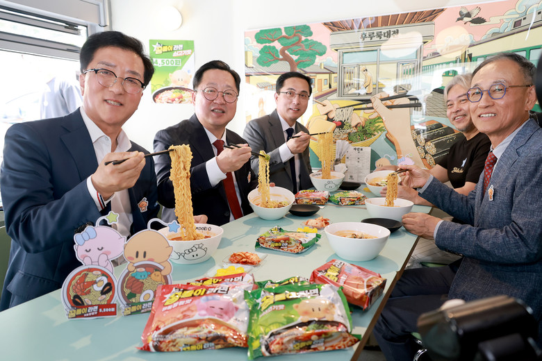[대전 세계타임즈=이채봉 기자] 대전시의회 조원휘 의장은 9일 아트사이트 소제(동구 소제동)에서 개최된 ‘대전꿈돌이 라면’출시 팝업행사에 참석해 ‘대전 꿈돌이 라면’출시를 축하하며, K-푸드와 함께 대전을 널리 알릴 수 있는 대박 아이템이 되길 기원했다.