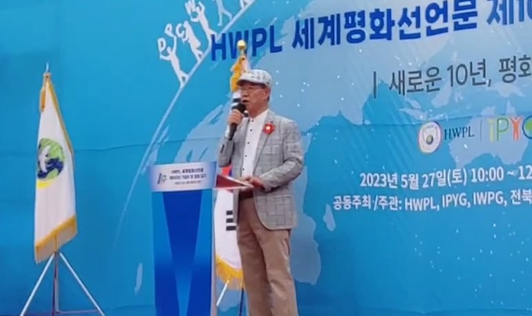[세계타임즈 백진욱 기자] 지난27일(토) (사)하늘문화세계평화광복(HWPL, 대표 이만희)글로벌12지부가 전주시 삼천천 기접놀이전수관 앞 하천변에서 ‘HWPL 세계평화선언문 제10주년 기념식 및 평화 걷기’ 행사를 개최했다.