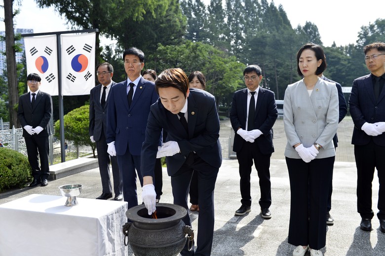 이날 세종시의회 임채성 의장과 김효숙, 김동빈 부의장은 의회사무처 간부들과 함께 충령탑과 위패 봉안소를 찾아 순국선열 및 호국영령의 넋을 기리며 시민과 함께하는 의정활동에 대한 의지와 각오를 다졌다.