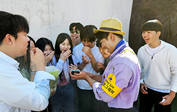 | ▲AI 전문 사진작가가 삼성전자가 에버랜드에서 운영중인 '갤럭시 스튜디오 포토'에서 1020세대 방문객들에게 '갤럭시 S24'로 사진 촬영 후 '생성형 편집' 기능으로 완성한 작품을 공유하고 있다 |