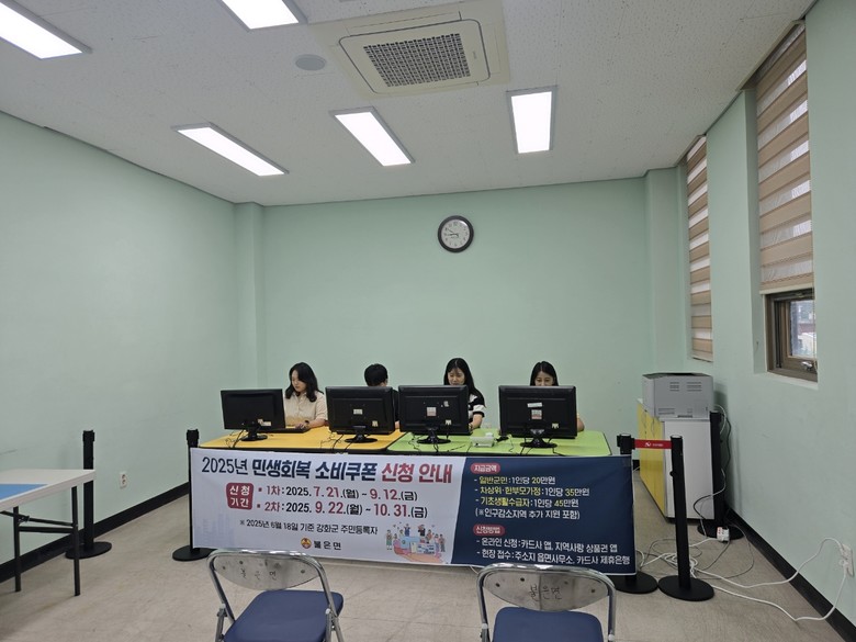 [강화군 세계타임즈=심하린 기자] 강화군 불은면(면장 윤승구)은 주민자치센터 내에 민생회복 소비쿠폰 전담 접수공간을 마련하고, 주민들의 원활한 신청을 적극 지원하고 있다.