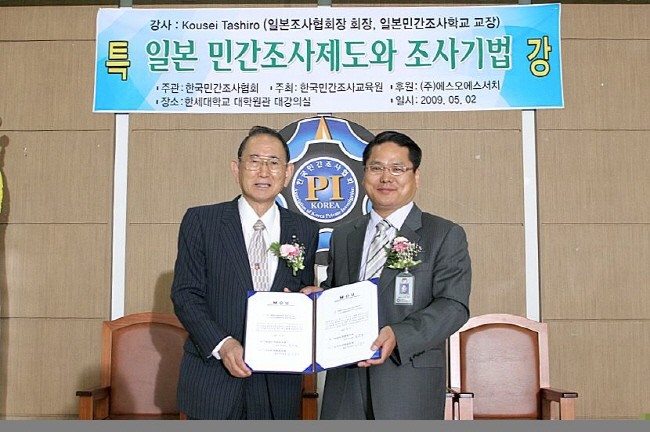 (사진=2009년 일본민간조사협회 다시로갱생 회장 초청 특강 및 학술세미나)