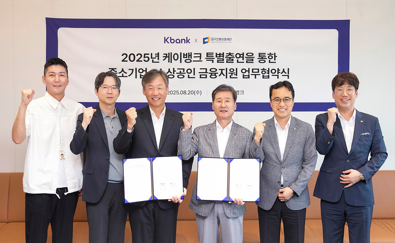 이날 협약식에서 박진우 대구신용보증재단 이사장은 “케이뱅크의 추가 출연은 지역 기업의 경영난 해소에 큰 힘이 될 것”이라며, “영업점 방문이 어려운 1인 소상공인과 금융비용이 부담되는 기업들의 많은 신청을 바란다”고 말했다.
