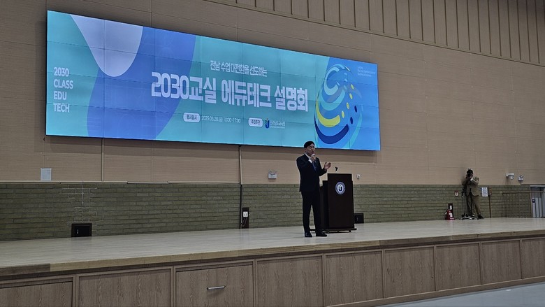 ‘2030교실 에듀테크 설명회’는 전남교육청이 추진하는 2030교실에 적용 가능한 최신 에듀테크 솔루션을 소개하는 자리로, 50여 개 업체가 참가해 디지털 기기, 플랫폼, 솔루션, 콘텐츠 등 60여 개 제품을 선보였다.
