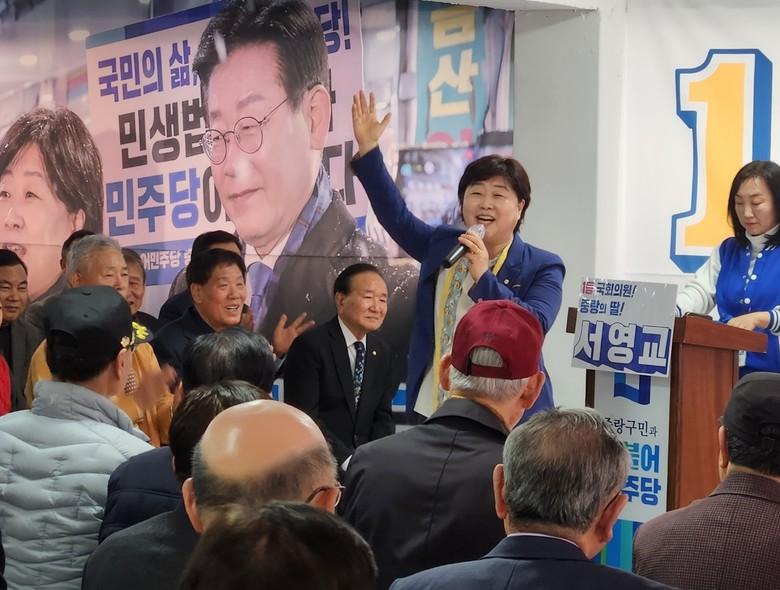 서영교 국회의원 선거사무소 개소식에는 문재인 전 대통령·정세균 전 총리·이재명 당 대표·김부겸 민주당 상임공동선대위원장 등이 축전과 축하영상을 보내왔고, 박홍근 전 원내대표(중랑을 국회의원), 장경태 최고위원(동대문을 국회의원), 이정헌 민주당 광진갑 후보, 박홍배 전 민주당 전국노동위원장이 참석해 축하했다. 박홍배 위원장은 ‘개소식에 이렇게 많은 지역 주민들이 모인 것은 처음 본다’며 놀라워 했다.