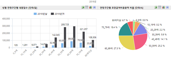 건강보험심사평가원에 따르면, 2019년 류마티스 관절염 환자수는 247,782명으로, 남성(60,721명)에 비해 여성은 187,061명으로 여성이 3배 이상으로 많이 앓고 있는 질환이다. 2019년 연령구간별 요양급여비용총액 비율로 살펴보면 60대 27.3%, 70대 18.4%, 50대 25.2%, 40대 14.1%, 30대 5.9%, 20대 2.2% 순으로 나타났다.