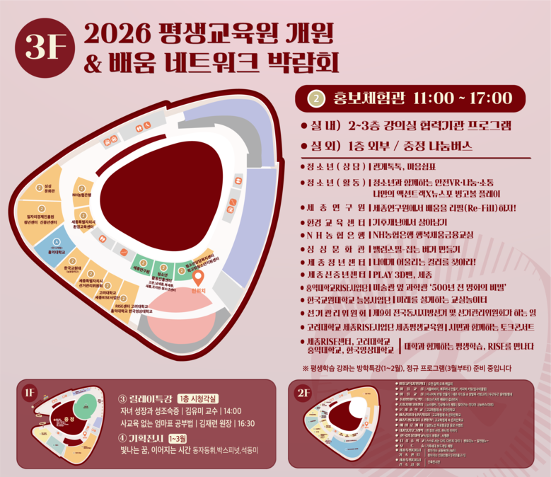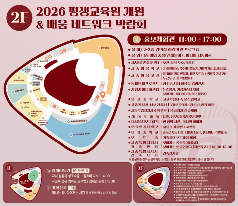 한편, 개원식 및 배움 네트워크 박람회 등 행사 관련 자세한 사항은 세종특별자치시교육청평생교육원 누리집(https://life.sje.go.kr)에서 확인할 수 있다.