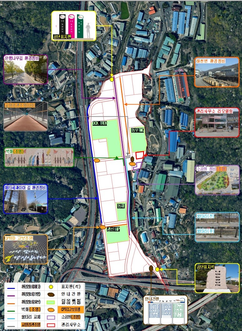 또한, 노후된 벽면을 활용한 벽화길 조성, 유휴부지 내 소공원 설치 등을 통해 농공단지의 미관과 보행환경을 개선하고, 공모에 참여한 입주기업의 노후시설을 리모델링해 근무환경을 쾌적하게 만들 예정이다.