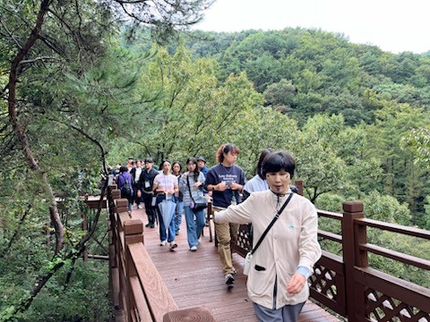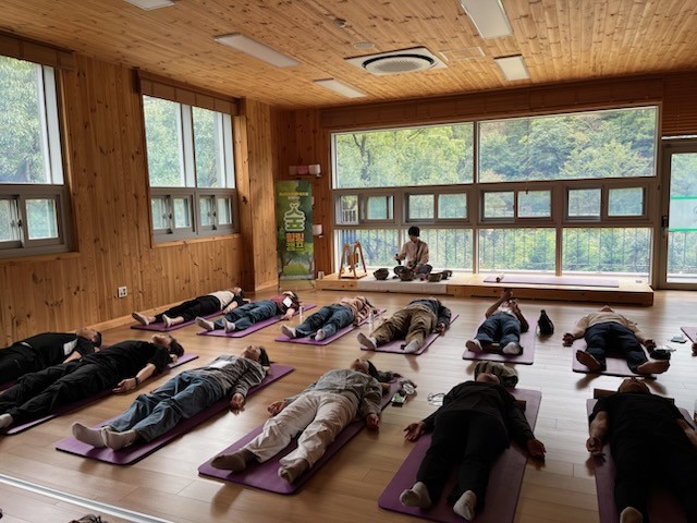 참가자들은 가을이 깊어지는 숲속에서 산림치유지도사와 함께 숲길 걷기, 자연물을 활용한 조별 활동, 싱잉볼 명상, 꽃차 테라피 등 다채로운 쉼 프로그램을 체험하며 긴장을 풀고 안정을 되찾았다.