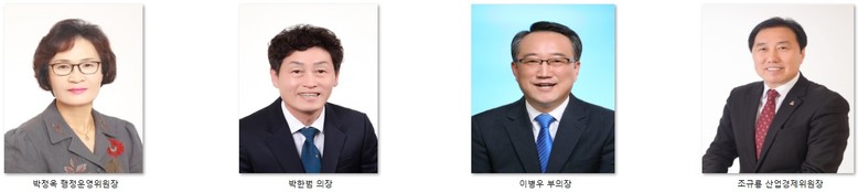 선거를 통해 전반기 동안 의회를 이끌어갈 의장단 의장에는 박한범 의원, 부의장에는 이병우 의원, 행정운영위원장에는 박정옥 의원, 산업경제위원장에는 조규룡 의원이 각각 선출되었다.