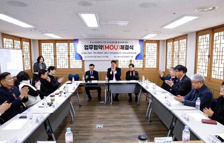 [서울 세계타임즈=이장성 기자] 서울특별시의회 도시안전건설위원회 부위원장으로 활동하고 있는 김용호 시의원(국민의힘, 용산1)은 지난 12월 10일 서울시의회 별관에서 개최된 (사)서울시상점가전통시장연합회와 태백시, 태백농협 협동조합, 태백시 농공단지 연합회의 업무협약(MOU) 체결식에 참석해 서울과 태백 간 지역경제 상생 협력의 의미를 강조하며 실질적인 성과 창출을 다짐했다.