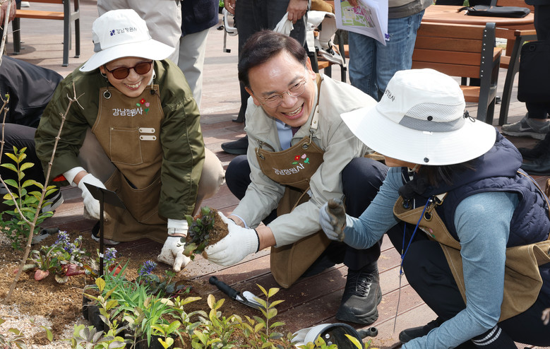 - 기부한 수목·정원·벤치 등으로 함께 가꾸는 새로운 녹지문화 확산 - [강남구 세계타임즈=이장성 기자] 꿈이 모이는 도시, 미래를 그리는 강남구(구청장 조성명)가 4월 3일 양재천 개포동근린공원에서 제81회 식목일을 맞아 ‘우리 동네 초록기부 챌린지 – 참여의 정원 숲 조성 행사’를 열고, 구민과 함께 정원 숲을 조성했다.