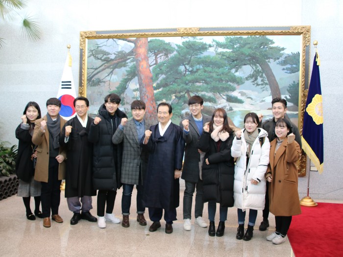 | ▲ 신년하례행사에 참석한 청년들과 기념촬영중인 정세균 의장 © 세계타임즈 |