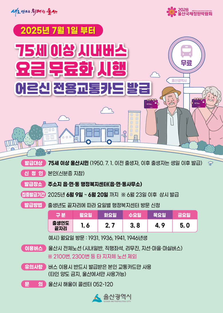 [세계타임즈=울산 이호근 기자] 울산시가 오는 7월 1일부터 전면 시행하는 ‘어르신 시내버스 요금 무료화’ 사업을 앞두고 마지막 사전 점검에 돌입했다.