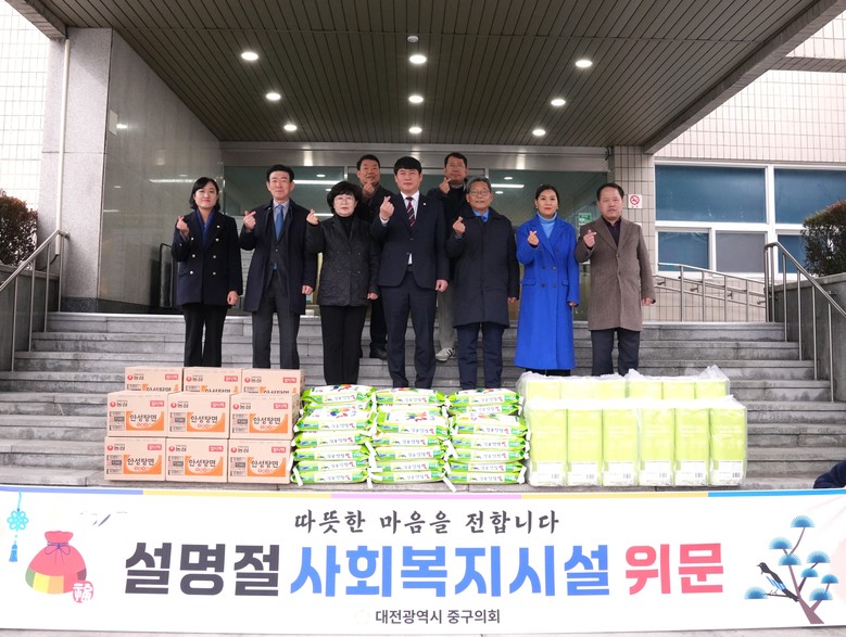 한편, 대전 중구의회는 매년 명절마다 관내 사회복지시설을 정기적으로 방문하여 위문품을 전달하고 있으며, 지속적인 나눔 실천을 통해 지역사회 나눔 문화 확산과 이웃사랑 실천에 앞장서고 있다.