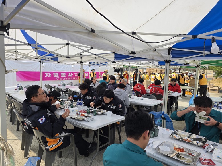 의성군과 안동시를 비롯해 청송, 영덕, 영양 등 주요 피해 지역 현장에는 김밥, 도시락, 간편한 간식과 생수, 이온 음료 등 수분 보충용 음료가 꾸준히 전달되고 있다.