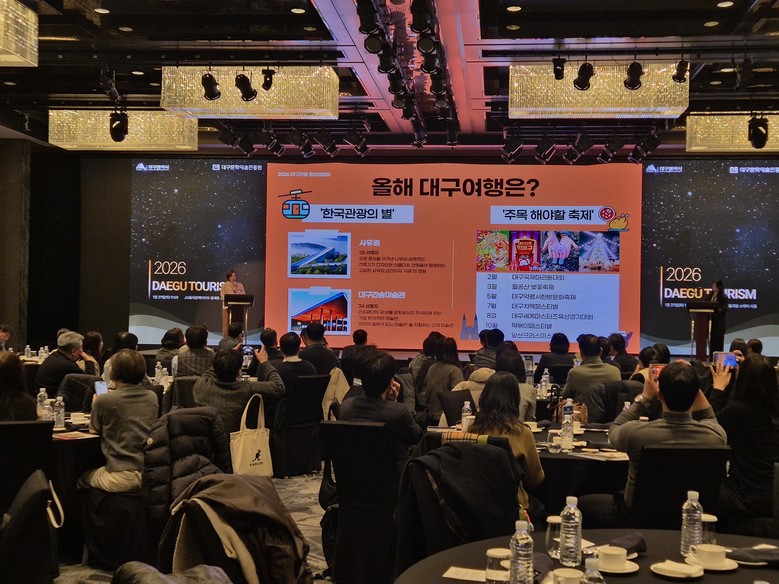 ▸ 국내 및 인바운드 여행사, 대구관광사업체, 관광 유관기관 등 120여 명 참여 [세계타임즈=대구 한윤석 기자] 대구광역시와 대구문화예술진흥원은 1월 27일(화) 서울 JW 메리어트 동대문 스퀘어 서울 그랜드볼룸에서 국내 및 인바운드 여행사를 초청해 대구관광 홍보설명회를 성황리에 개최했다.