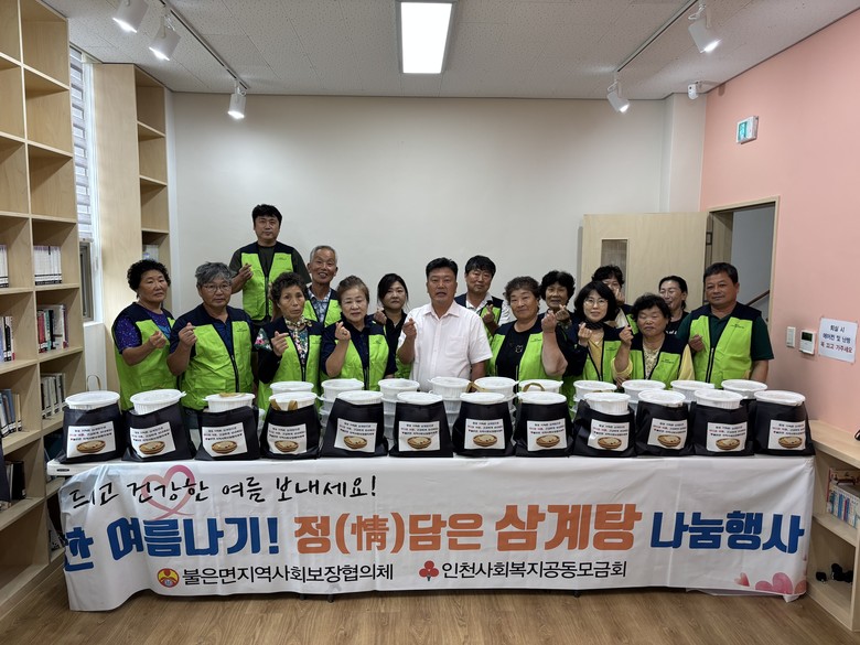 [강화군 세계타임즈=심하린 기자] 강화군 불은면 지역사회보장협의체(민간위원장 유섭섭)가 지난 18일, 주민자치센터에서 취약계층을 위한 ‘삼계탕 나눔 행사’를 개최했다고 밝혔다.