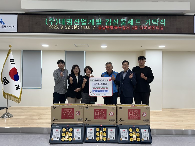 이선영 금남면장은 “매년 명절마다 따뜻한 나눔을 실천해 주시는 ㈜태명산업개발에 감사드린다”며 “기탁해 주신 명절 위문품은 금남면 내 취약계층에게 잘 전달될 수 있도록 최선을 다하겠다”고 말했다.