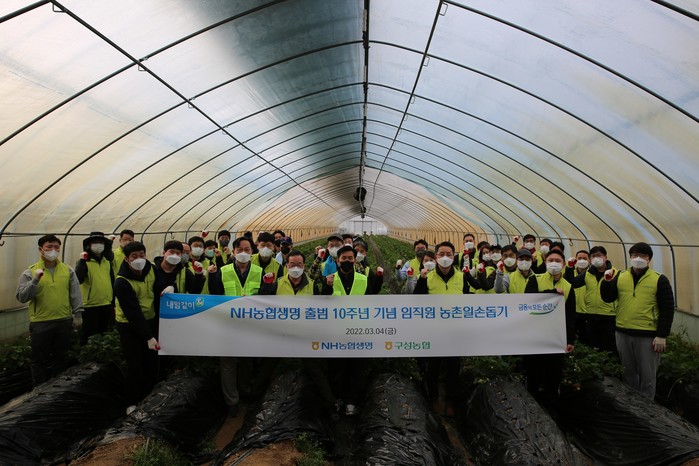 [세계타임즈 이송원 기자]NH농협생명이 3월 4일(금) 출범 10주년을 맞아 농촌일손돕기를 실시했다. 경기도 용인시 처인구에 위치한 딸기농장을 방문해 딸기수확과 함께 농장 주변 환경 정리를 도왔다.
