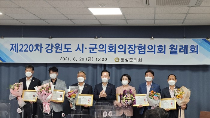 한편, 의정봉사상 시상식은 코로나19로 인해 20일 횡성군에서 개최된 제220차 강원도시군의회의장협의회 월례회에서 이정훈 강원도시군의회의장협의회장이 대신 전달했다.