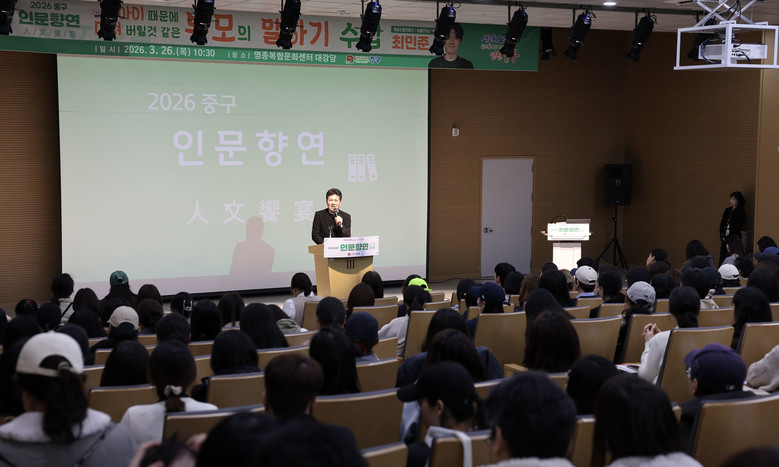 [중구 세계타임즈=심하린 기자] 인천시 중구(구청장 김정헌)는 지난 26일 영종복합문화센터 대강당에서 아들 교육 전문가 최민준 자라다 남아미술연구소 소장을 초빙해 ‘2026 중구 인문향연’을 성황리에 개최했다.