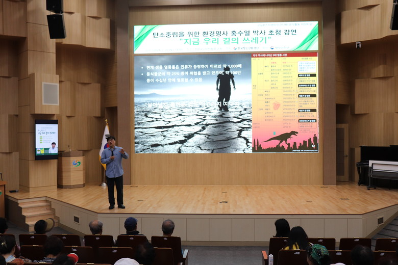 [세계타임즈]최성룡기자 = 한국청소년환경단(총재 남성용)은 7월 27일 창원시 마산합포구청에서 기후위기 극복 및 탄소중립 실천을 주제로 환경명사 특강을 실시했다.