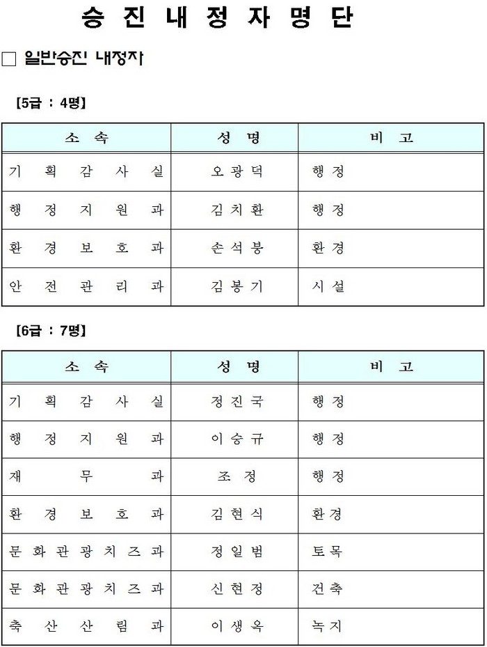 ○ ‘18년 상반기 정년퇴직과 공로연수 등에 따라 과장급 및 팀장급이하 예상결원에 대한 승진요인 발생