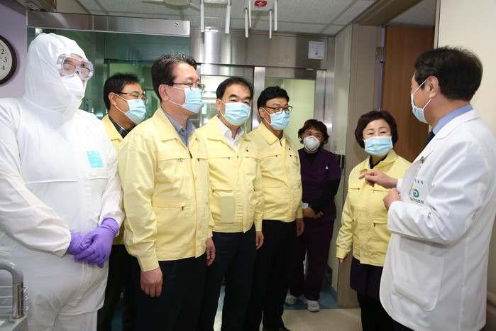 이날 대구시의회 문화복지위원회는 대구의료원을 방문하여 격리병상 현황과 선별진료소 운영 현황, 방문객 관리 등 신종 코로나 바이러스 감염증 관련 대응 상황을 확인하고, 선별진료소와 음압격리병실 등 주요 시설들을 둘러보며 이번 사태에 대비한 대응체계를 세심하게 살폈다.