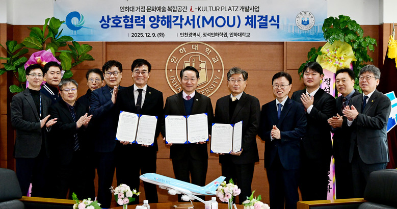 인천시는 12월 9일 인하대학교, 정석인하학원과 함께 ‘인하대 거점 원도심 문화예술 복합공간 개발’을 위한 양해각서(MOU)를 체결했다. 이번 협약은 인하대 역세권 주변 원도심에 대학 문화와 연계한 문화 거점 조성을 목표로 한다.