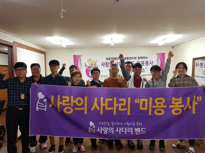 [대전=세계타임즈 이장성 기자] 대전시 SNS 봉사단체 사랑의 사다리 밴드(리더 이정제)는 21일, 오전10시, 동구 판암동에 위치한 보문장애인자립생활센터(소장 신인수)에서 미용봉사(단장 송남석)로 우리 사회의 따뜻한 사랑을 실천하였다.