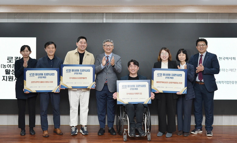 [세계타임즈 = 송민수 기자] 한국마사회(회장 정기환)와 함께일하는재단(이사장 이세중), 한국사회적기업진흥원(원장 정현곤)이 함께 추진한 “2023년도 로컬(농어촌지역) 활성화 지원사업”(이하 지원사업)에 선정된 4개 기업에 프로젝트 사업비를 전달하는 기금전달식이 19일 오후 함께일하는재단 교육장에서 개최됐다.