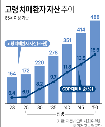 정부와 언론 보도에 따르면 실제로 최근 자식이나 간병인 등이 고령 치매 환자의 금융정보를 알아내 무단으로 자산을 빼내는 사례가 연이어 발생하고 있다.저출산위는 "전체 인구의 2.4%인 고령 치매 환자 자산이 GDP 6.4% 수준으로 나타나 인구 대비 자산 비중이 매우 높은 편이며, 치매로 인한 자산 동결이 실물 경제에 미치는 영향이 결코 적지 않을 것"이라고 밝혔다.조사단은 향후 치매 환자가 2030년 178만7천명, 2040년 285만1천명, 2050년 396만7천명으로 가파르게 늘면서 치매 머니도 급증해 2050년에는 지금보다 3배 이상 늘어난 488조원(예상 GDP의 15.6%)에 이를 것으로 전망했다.