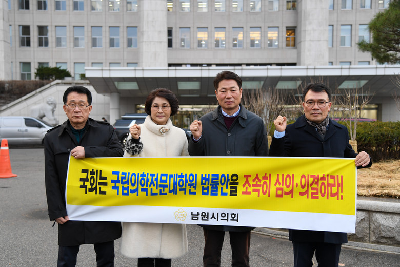 이날 보건복지위원회 공청회는 국립공공보건의료대학 설립·운영에 관한 법률안(김성주 의원), 국립공공보건의료대학 설립 및 운영에 관한 법률안(이용호 의원) 외 3건에 대한 내용으로 진행됐다. 금번 공청회는 비공식으로 진행되어 방청이 허용되지 않아, 특별위원회 위원은 관련 국회의원 등과 면담을 통해 당정청 협의된 남원시 몫 49명에 대한 당위성을 강력하게 전달하였다.