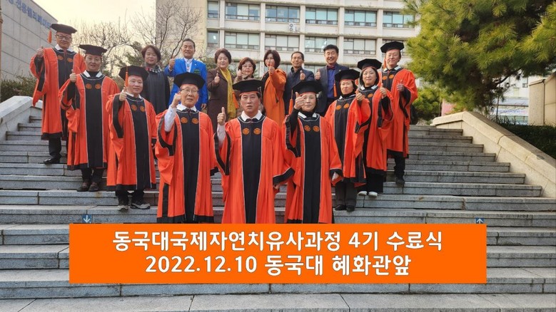 [세계타임즈 백진욱 기자] 12월 10일 오전 10시 동국대 국제자연치유사과정 1기 17명, 2기 14명, 3기 19명, 4기 9명 62명은 내 몸을 치유하고 가족의 건강까지 책임지는 건강 프로그램 동국대 국제자연치유사 과정 4기 수료식이 있었다.