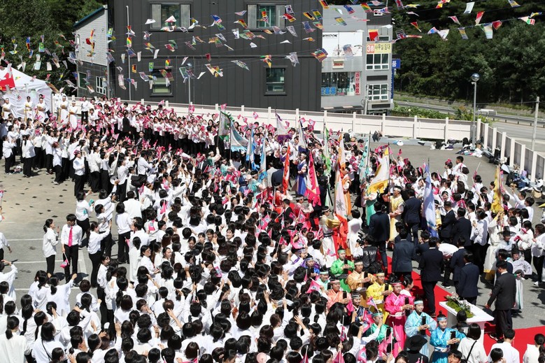 | ▲신천지예수교 증거장막성전(신천지예수교회) 이만희 총회장이 4일 빌립지파 강릉교회를 방문해 환영을 받고 있다. [사진 제공 = 신천지예수교회 빌립지파] |