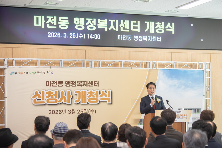 이날 강범석 서구청장은 “마전동 행정복지센터 신청사 개청으로 주민들이 더 편리하게 행정서비스를 이용하실 수 있게 되어서 기쁘며, 주민들의 성원에 힘입어 마전동은 앞으로 계속해서 발전해나갈 것이다”라며 축하하였다.