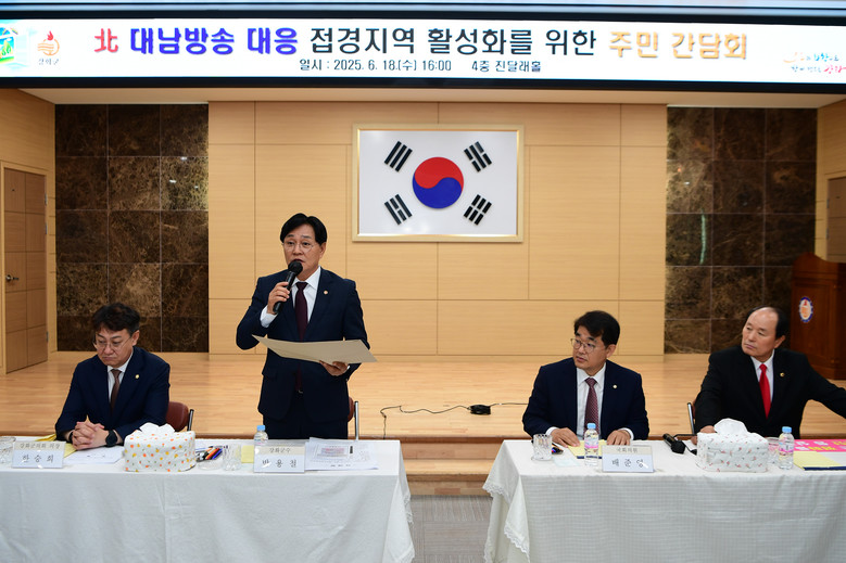 [강화군 세계타임즈=심하린 기자] 강화군(군수 박용철)이 지난 18일 북한 대남방송으로 고통을 겪은 접경지역 주민들과 간담회를 개최하고, 지역 회복과 활성화를 위한 다양한 의견을 수렴했다.