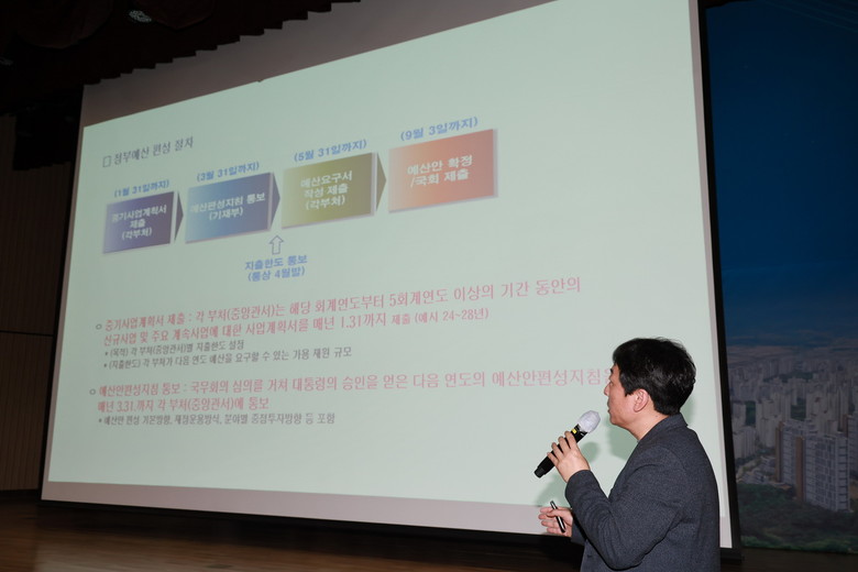 [예천군 세계타임즈=한윤석 기자] 예천군(군수 김학동)이 2026년도 국비예산 확보를 위해 전력투구하고 있다.예천군은 21일, 군청 5층 대강당에서 전 부서 국비예산 및 현안사업 담당자 등을 대상으로 2026년도 국비 확보전략 전문가 특강을 실시했다.
