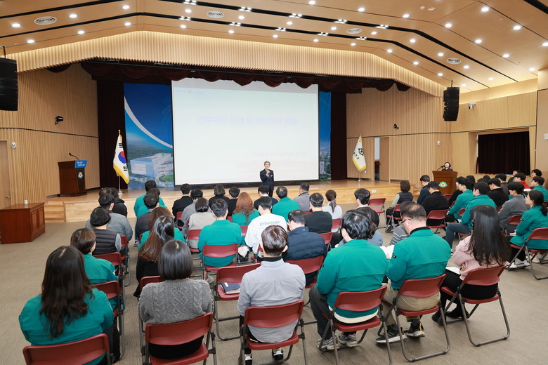 경상북도 국비예산팀장 윤선균 사무관을 초청하여 진행된 이날 교육은 다년간의 실무경험을 바탕으로 한 정부 및 국회 예산심의 대응 전략과 실무에 접목 가능한 노하우 전수에 중점을 두고 진행되어, 정부예산 편성에 대한 직원들의 이해도를 높이고 역량을 강화했다.
